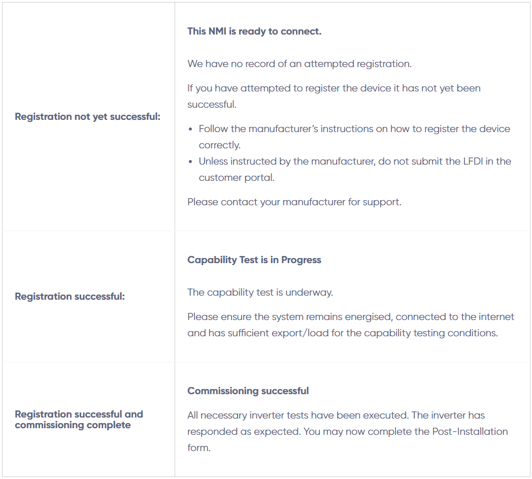 Our commissioning process involves multiple capability tests to confirm that the system is functioning properly. These tests automatically commence once the registration is successful.
