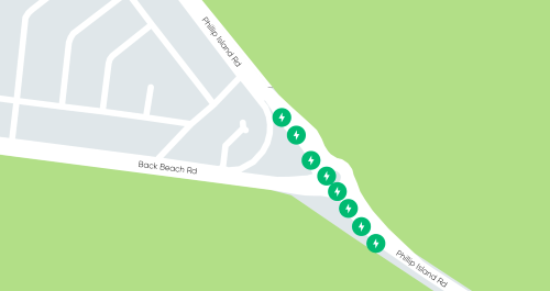 - At the intersection of Phillip Island Road and Back Beach Road, where we will add smart controllers to existing warm white LEDs.